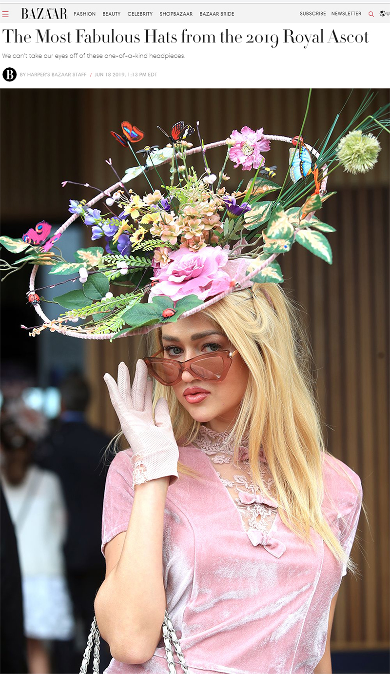 For the first day of Royal Ascot, I am wearing a fabulous hat by House of Charles and a demure pink dress by Lacry Couture. By adding a few stylish accessories, it can make all the difference. As E-news commented, "From the gloves and sunglasses to the extravagant hat, this attendee knows how to accessorize in style." Harpers Bazaar voted my hat as one of the most fabulous hats on the first day at Royal Ascot 2019. I am amazed that my picture appeared as the fifth photo just below the Queen of England and the other 3 photos before mine were all of royalty. (Please see the link to the Harpers Bazaar article at the end of this blog.) |