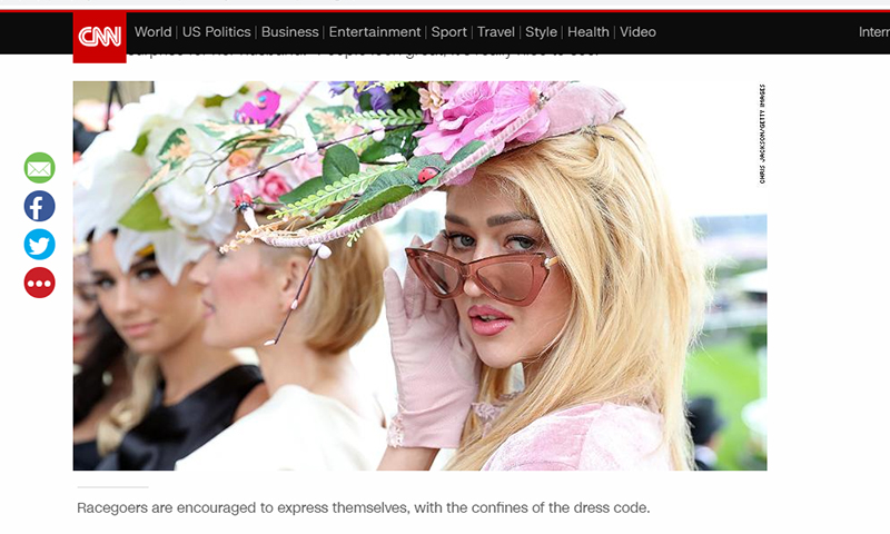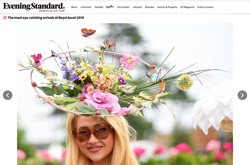 My image was one out of six photos used in the global news channel CNN coverage of the first day at Royal Ascot 2019. Three of the photos were of the Royal Family. So I am extremely pleased that CNN chose to use one of me of the other three photos for their article. It certainly does pay off to make that extra special effort when choosing the hat and outfit. In the Evening Standard, I was included in their first day coverage titled "The best dressed at Royal Ascot 2019". My image was also included in the Daily Mail's coverage of Royal Ascot. There were several other publications where my image was used but the ones below are some of the more notable ones.